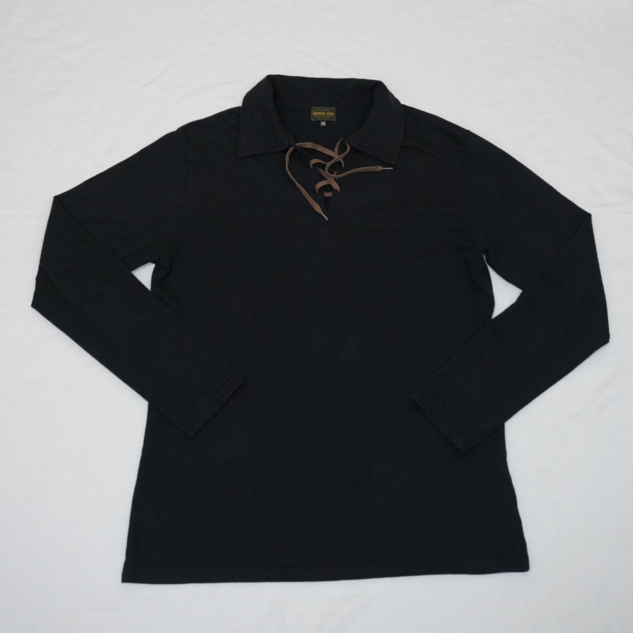 1950年代のデットストックを復元したコットンベースブラックニットです。シルエットも素材も抜群、優秀なコットンを使用、天竺なので頑丈で着やすいロングレースアップ。ワンウオッシュ後、タンブラー乾燥しているので洗濯してもサイズ感もあまり変わらず楽しめると思います。