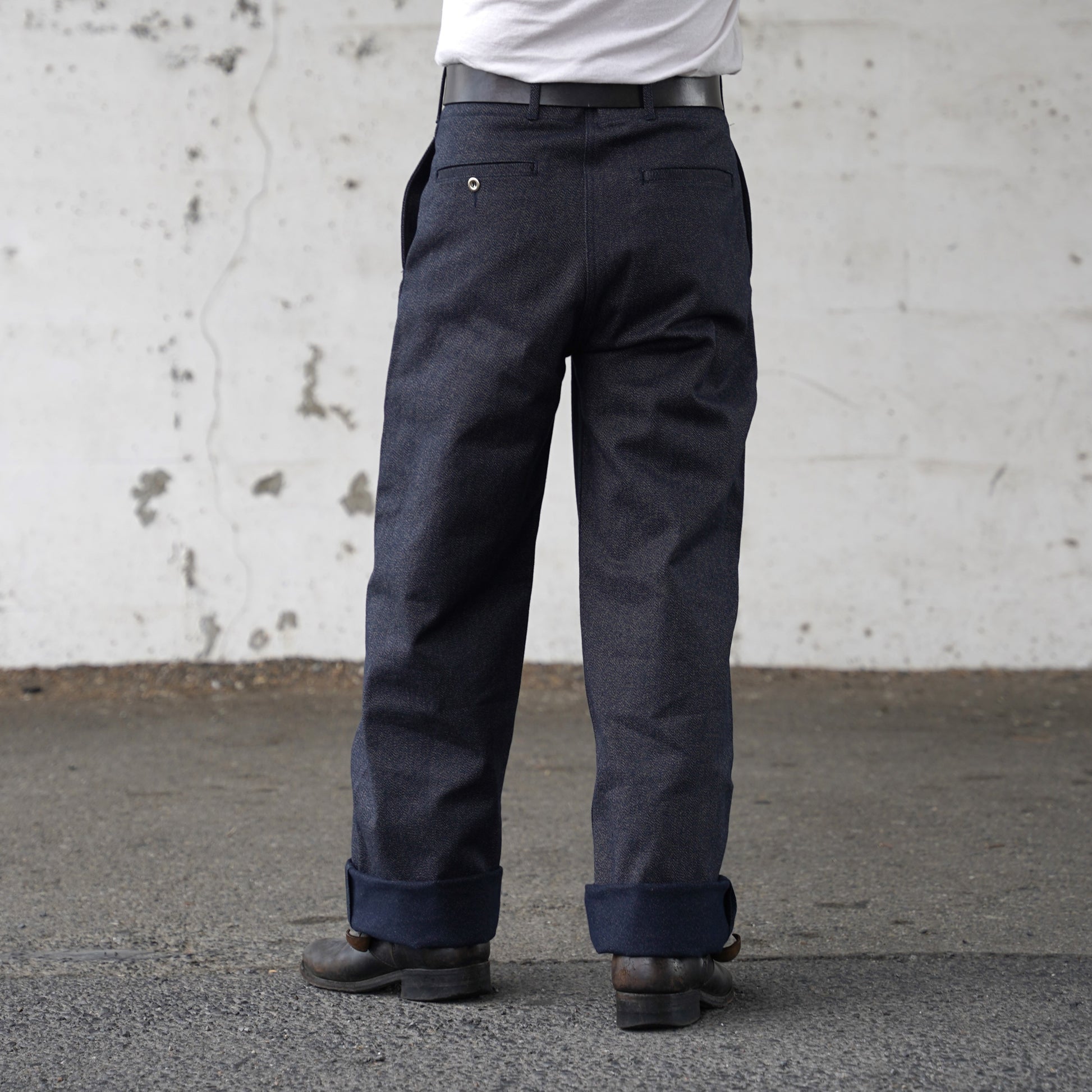 色落ちと風合いを楽しめるヘビーシャンブレー生地を使用し、何と言ってもシルエットが抜群です。