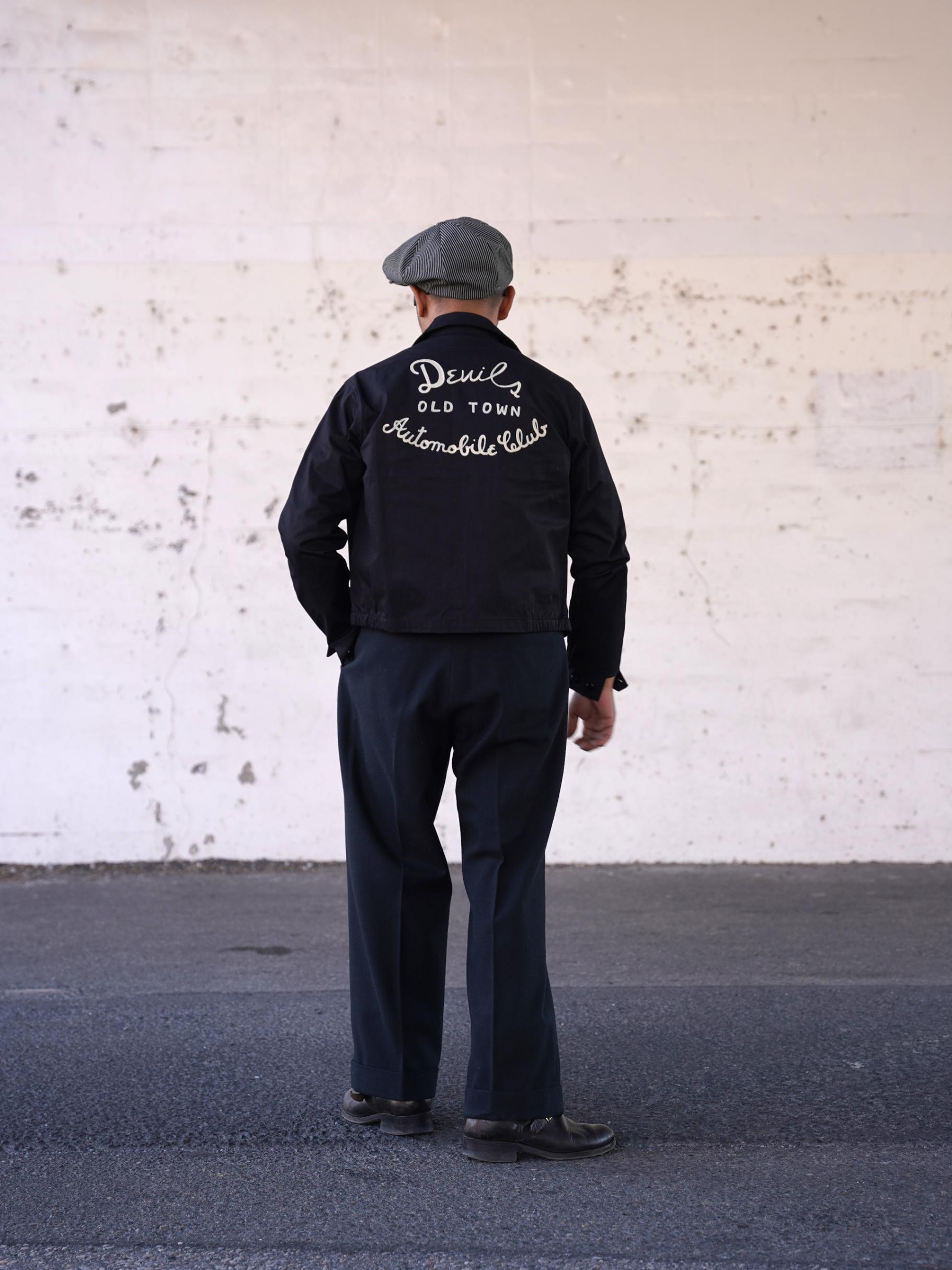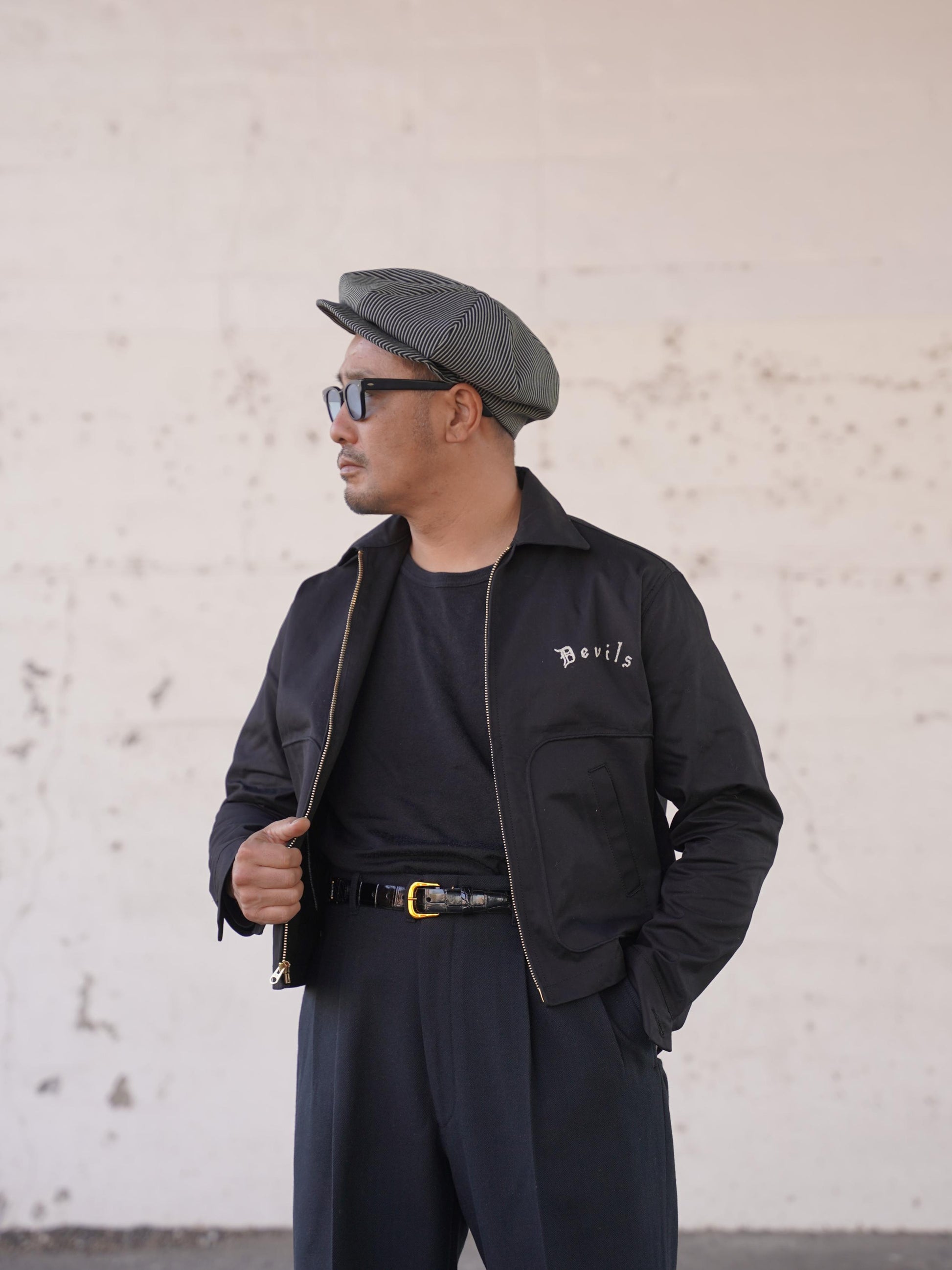 グルービンの定番、1940年代ヘラクレススタイルのコットンジャケット。今年の一重ジャケットは、当時実在してもおかしくないDEVILSのモーターサイクルクラブが刺繍されたデザインです。シルエットはタフな男前ショート、タロンジップに王道のブラックベースになります。