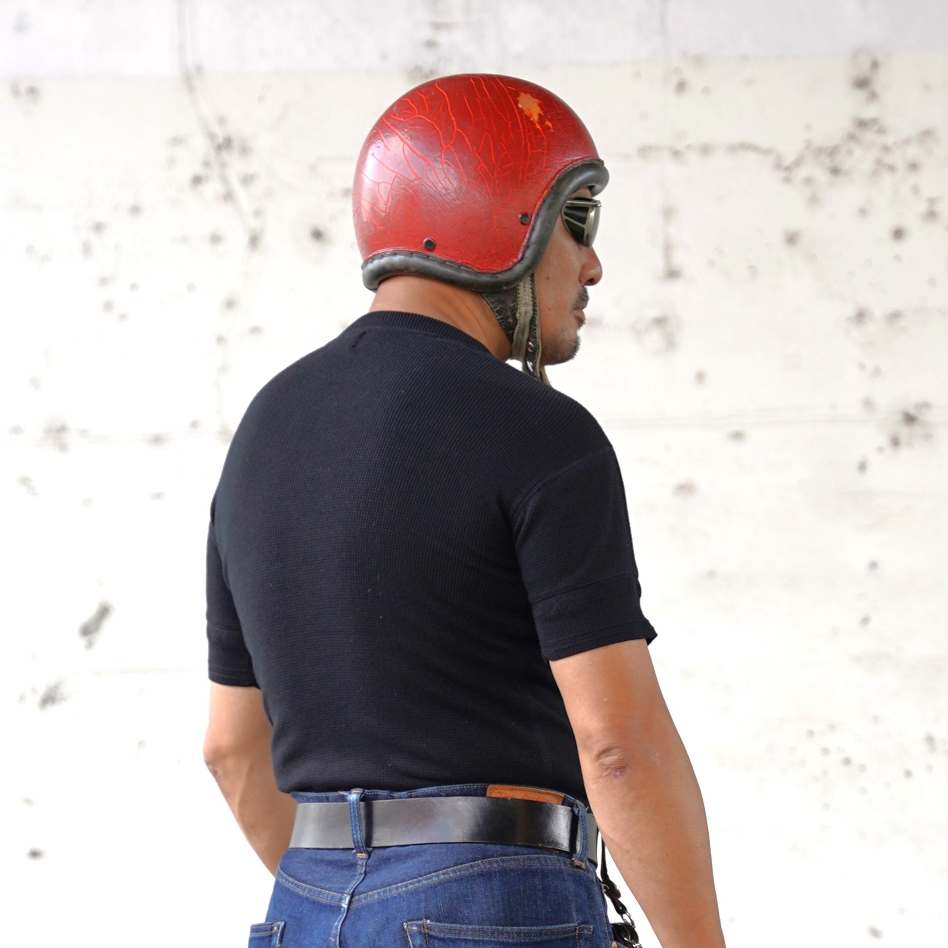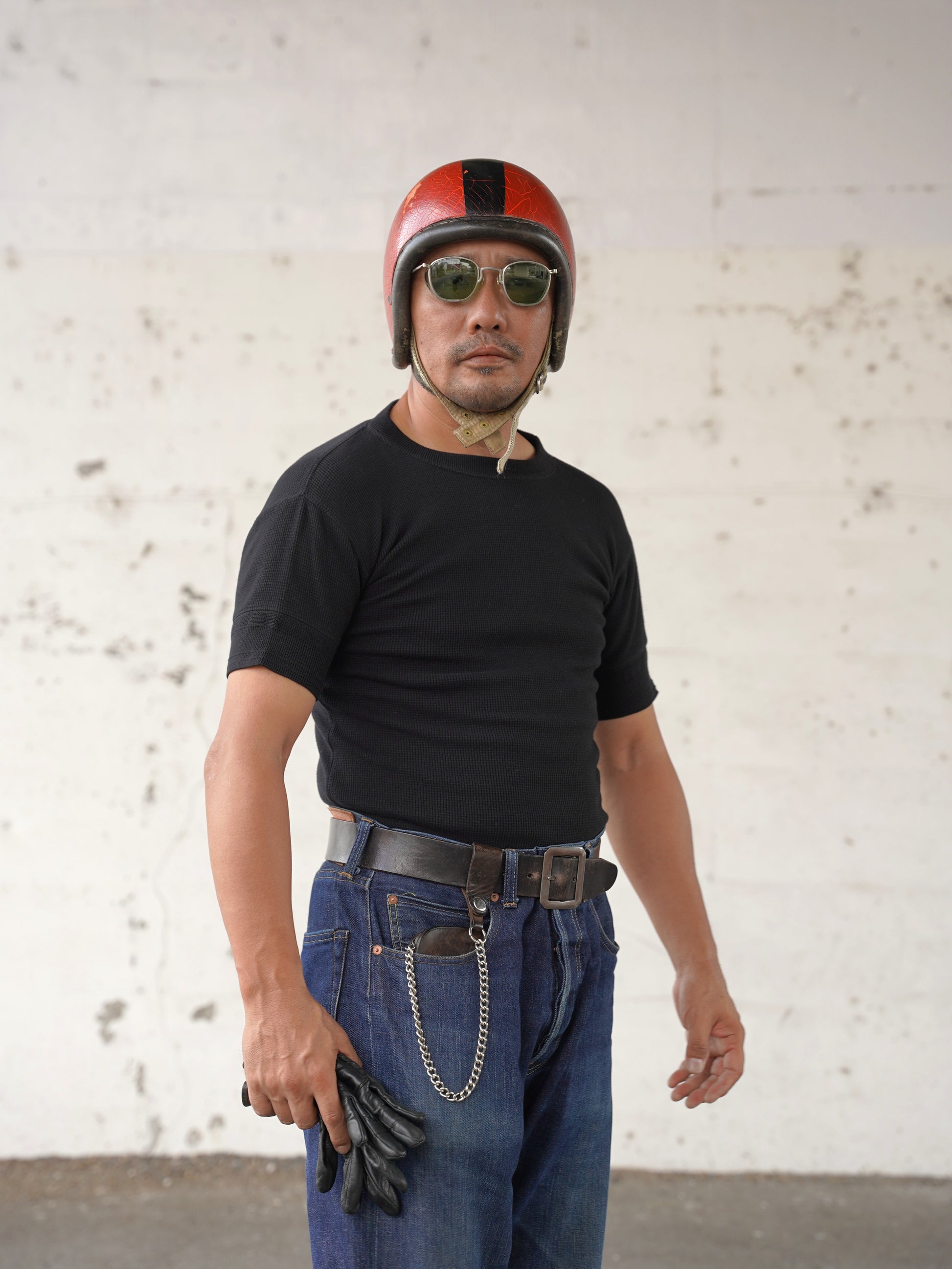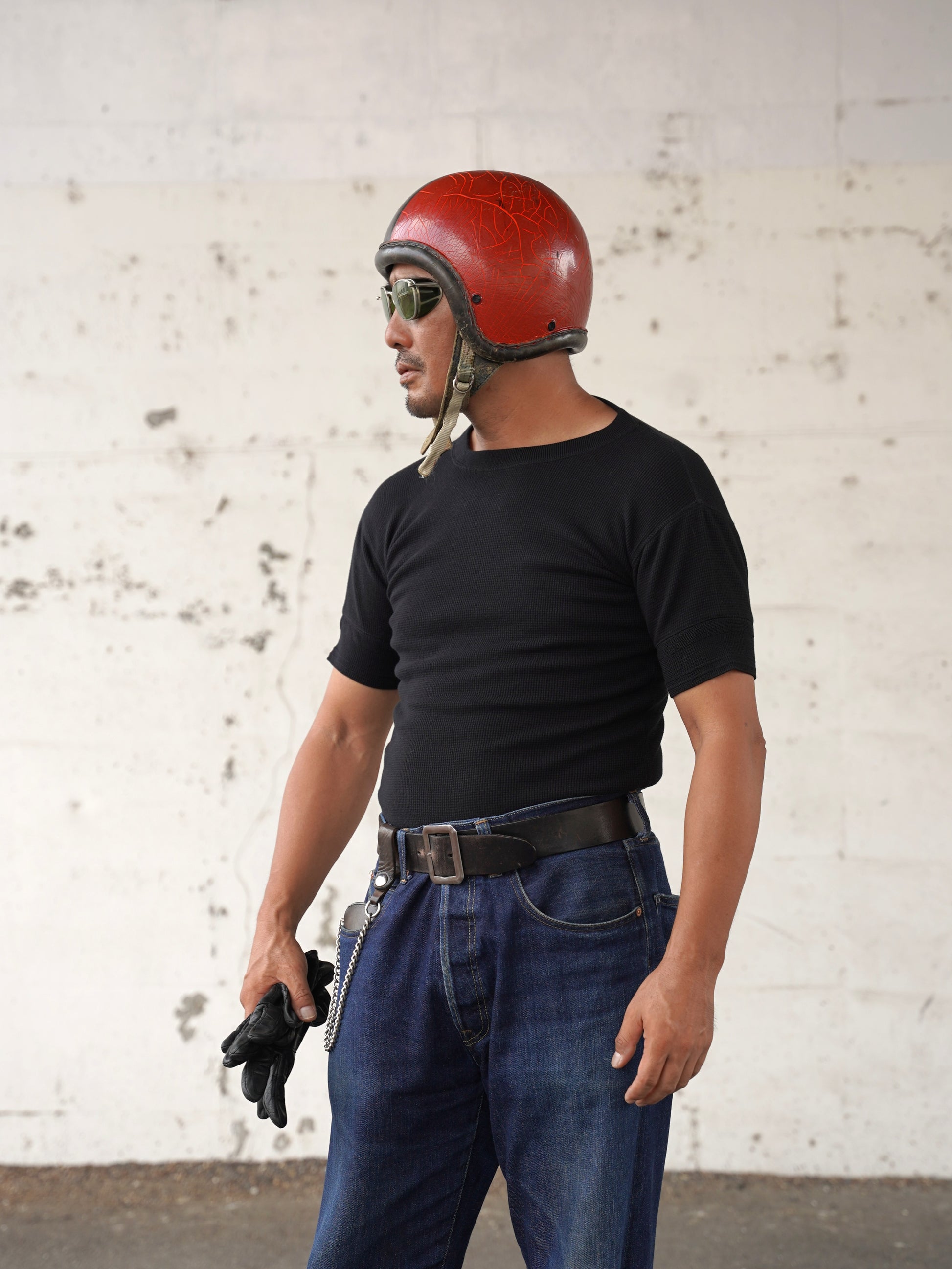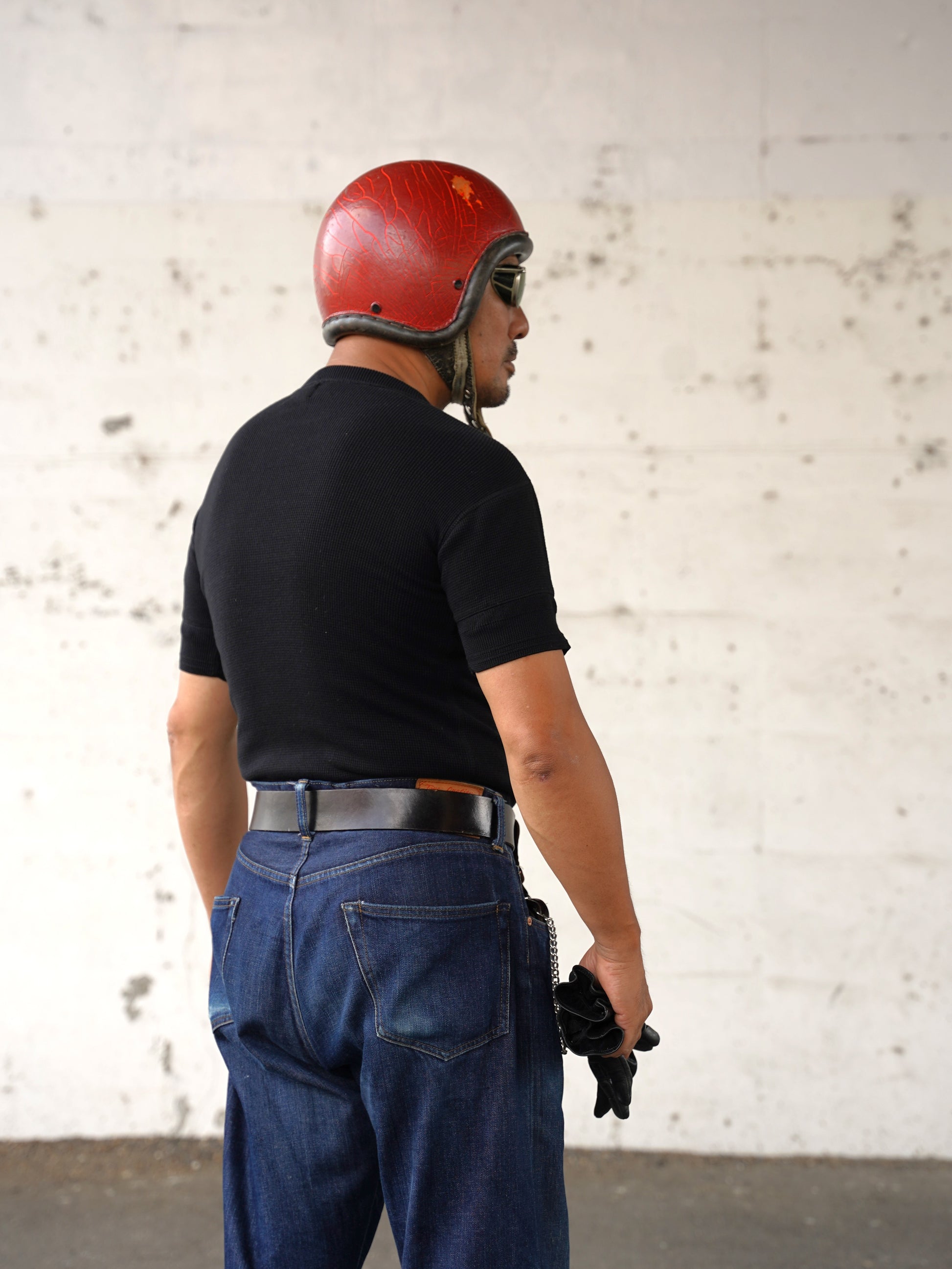 1940年代~1950年代に実在したアメリカのビンテージサマーニットをリアルに復元した製品です。リブの長さ、袖、生地のオンスも忠実に再現しています。生地ベースは当時のオリジナルを同じサイズで型取り仕込みました。スラックスやデニムにも融合する夏には欠かせない製品です。