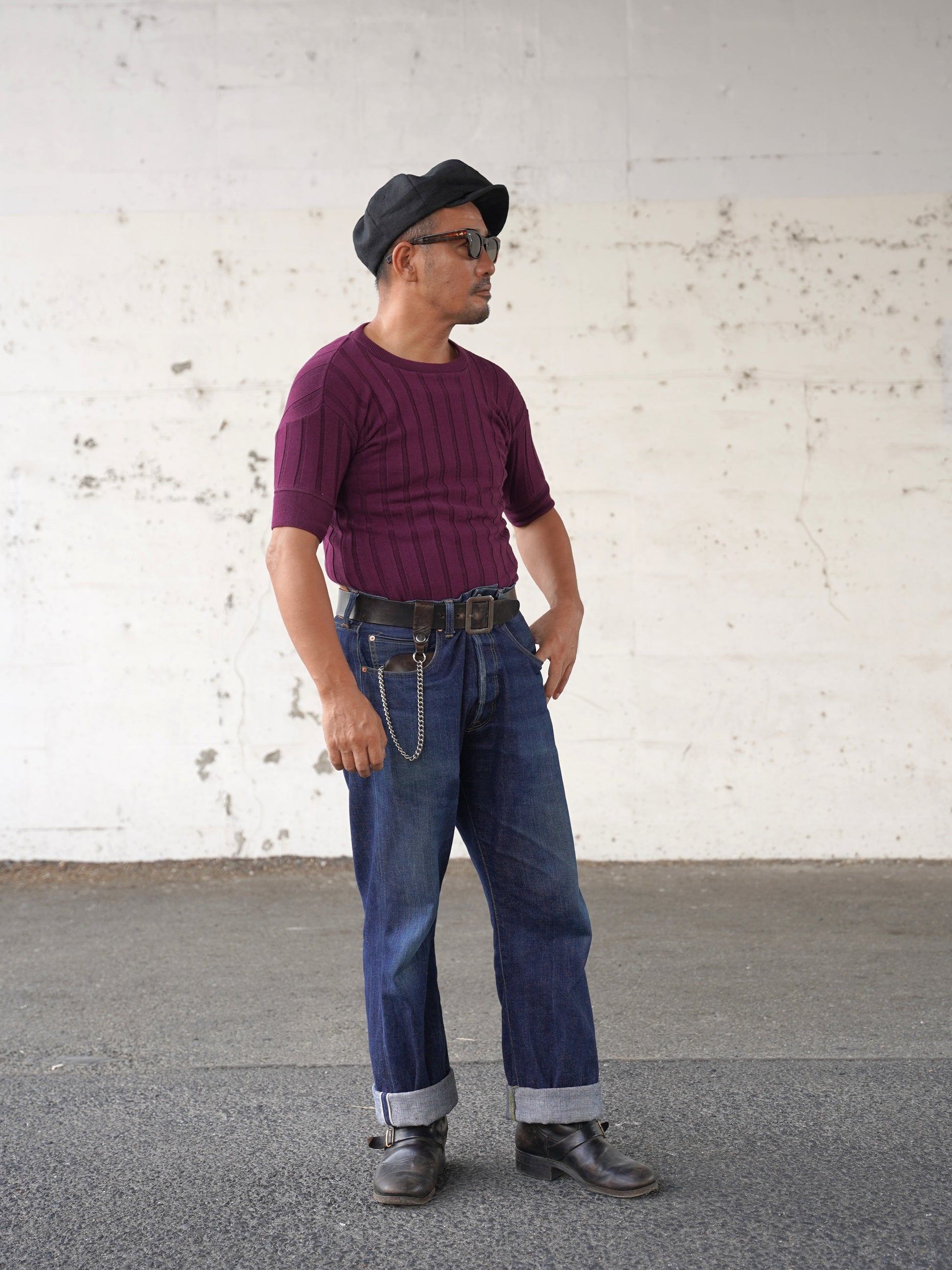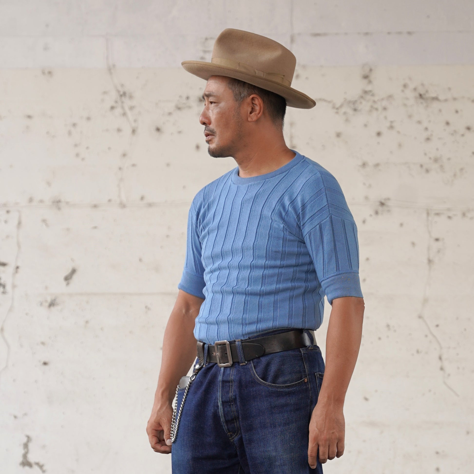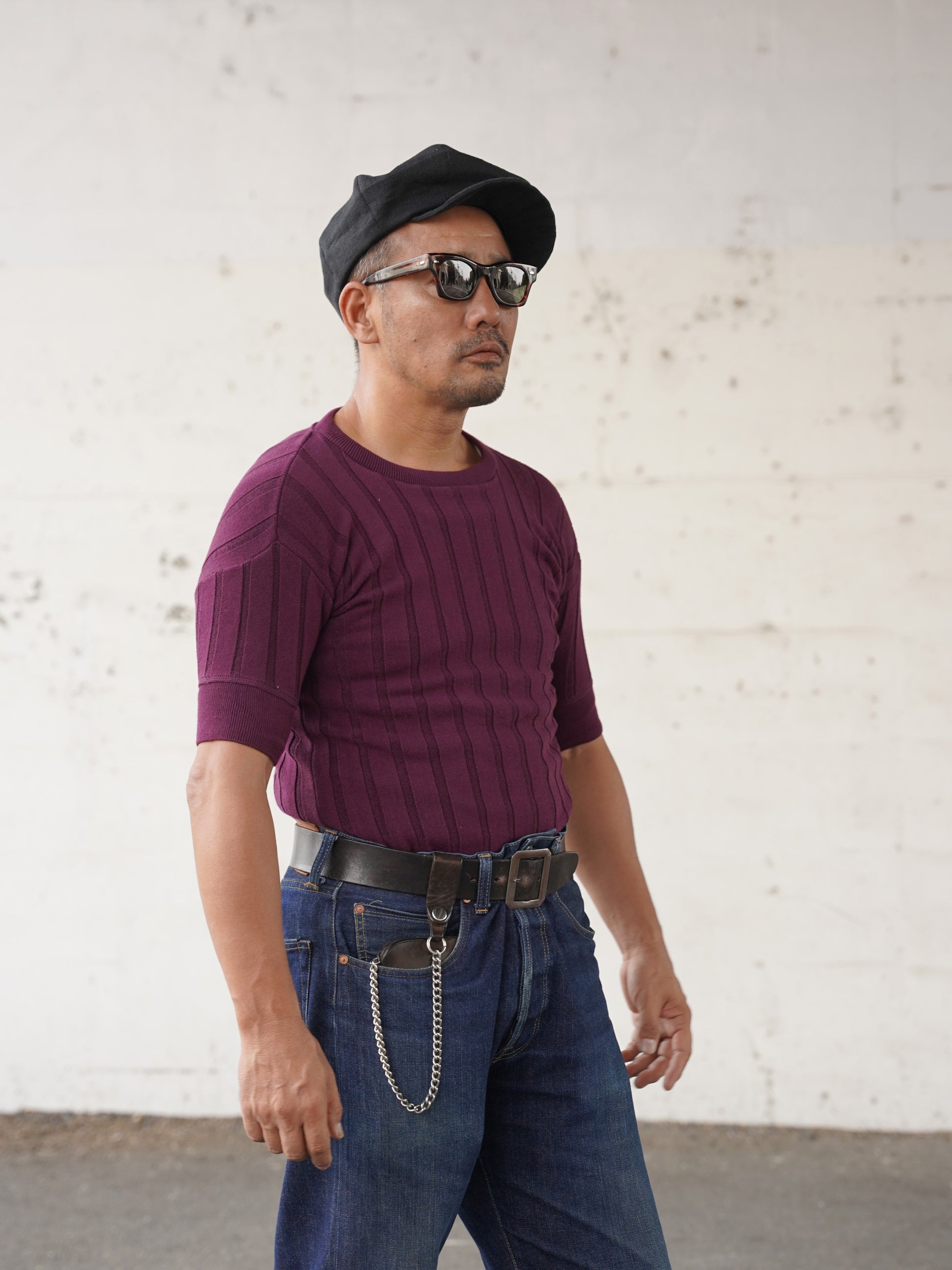 1940年代~1950年代に実在したアメリカのビンテージサマーニットをリアルに再現したニット。リブの長さ、シルエットや生地のオンスも忠実に、レアな当時の網目模様をそのまま柄を再現しています。コットン100%で、夏に欠かせない一品です。