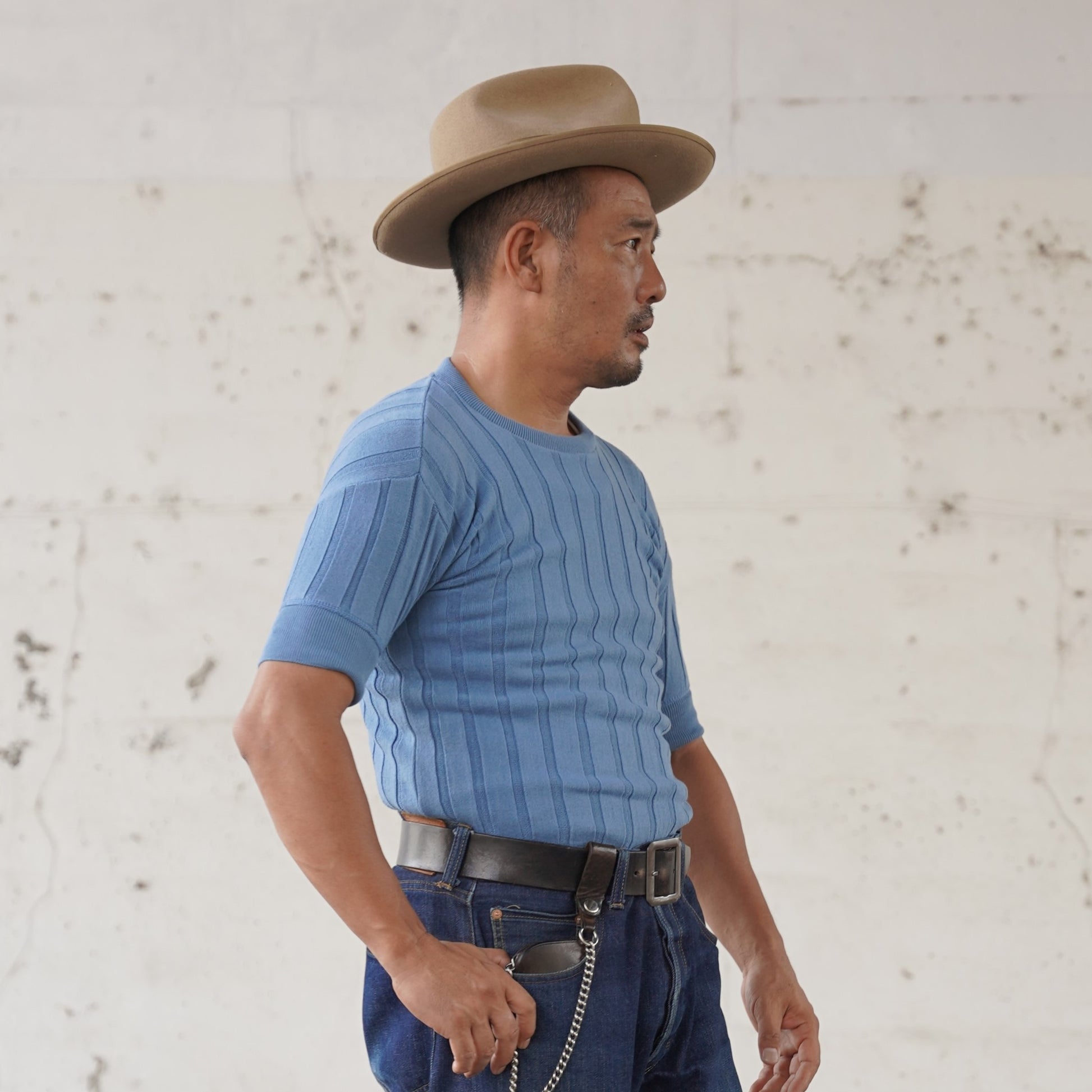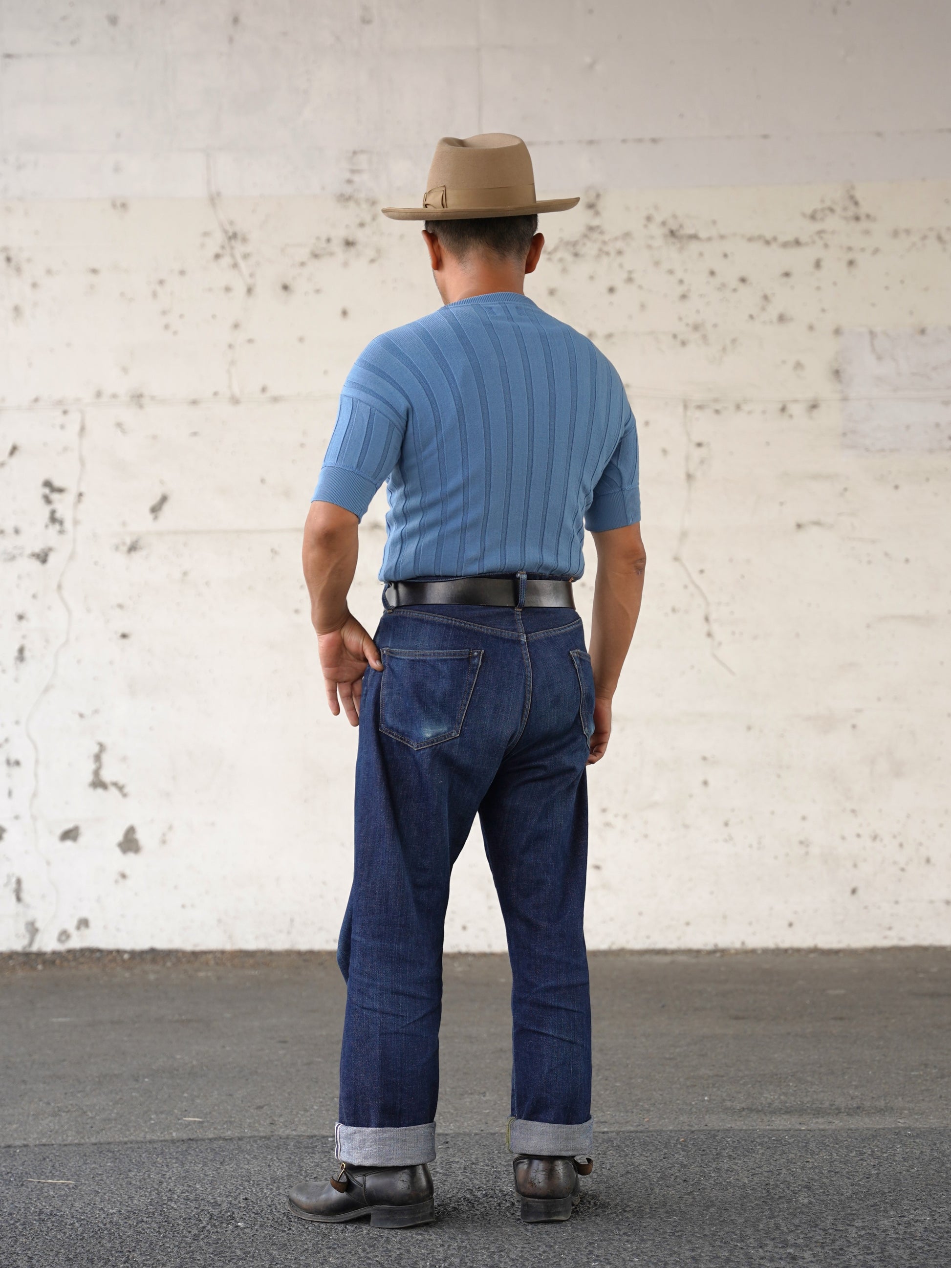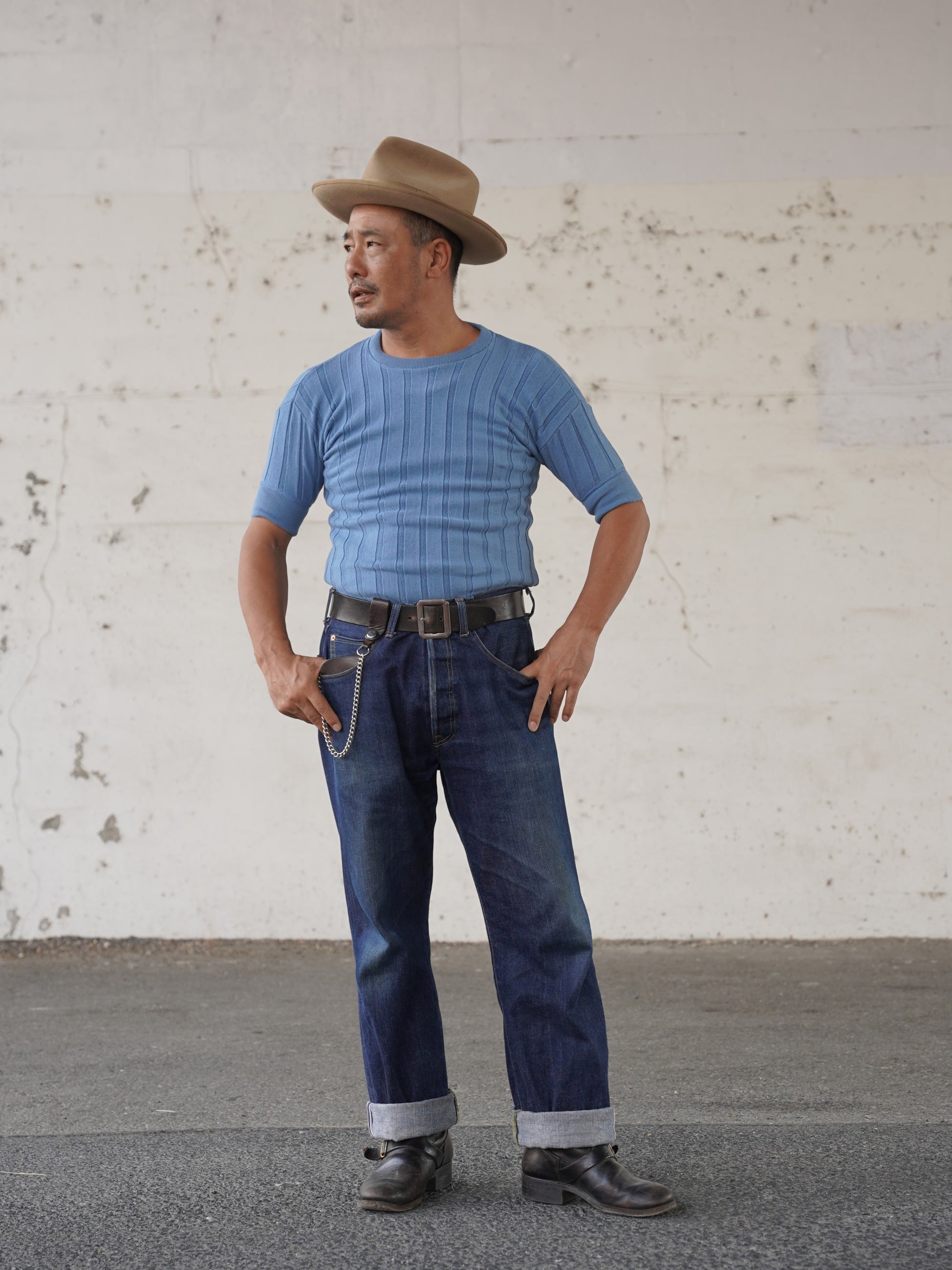 1940年代~1950年代に実在したアメリカのビンテージサマーニットをリアルに再現したニット。リブの長さ、シルエットや生地のオンスも忠実に、レアな当時の網目模様をそのまま柄を再現しています。コットン100%で、夏に欠かせない一品です。