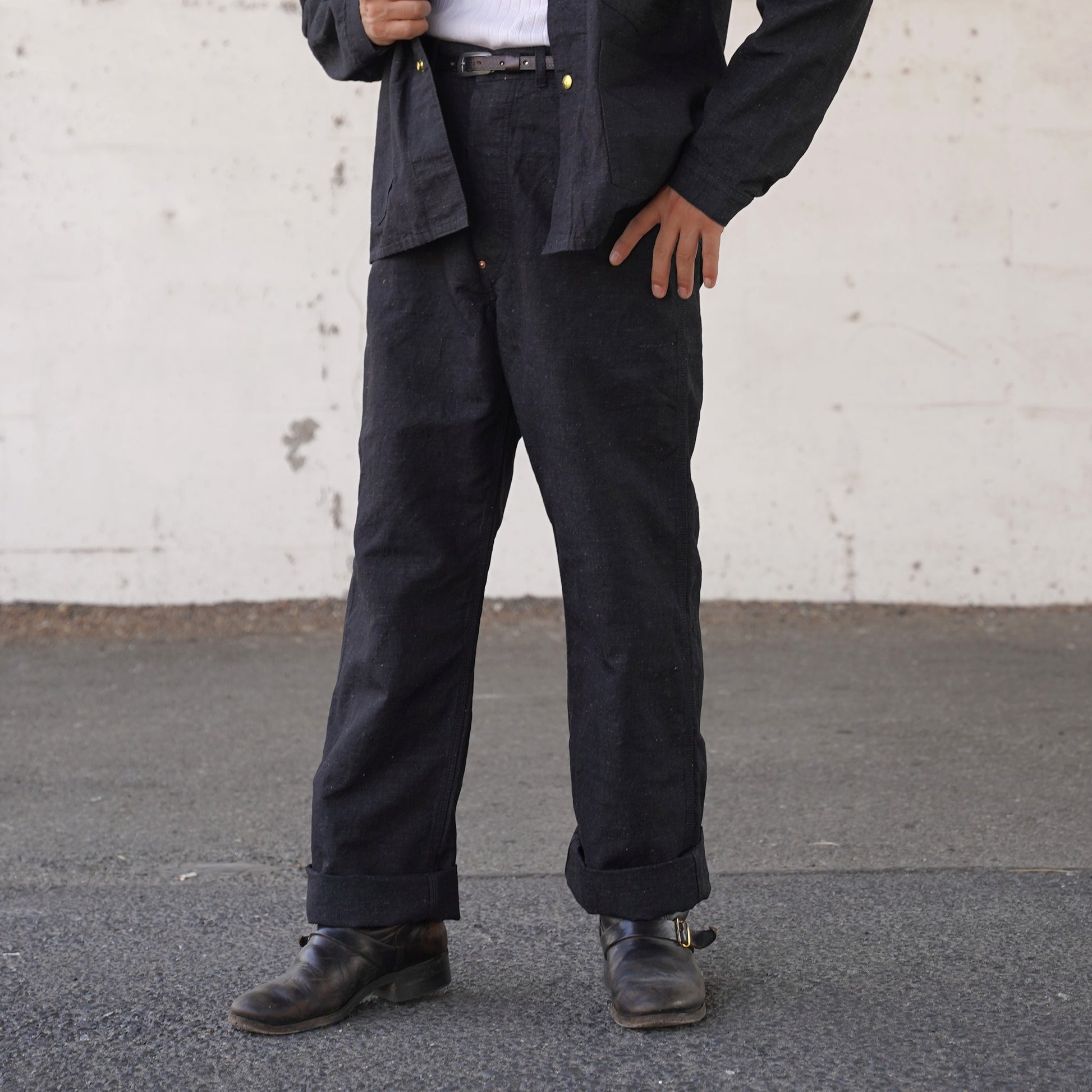 1940年代のストアーブランドのシンチバックパンツ。春夏に最適なオンス薄目の岡山産のリネンコットンの生地で仕上げてあります。セットアップでも楽しめます。シルエットもビンテージの形を保ったパンツです。