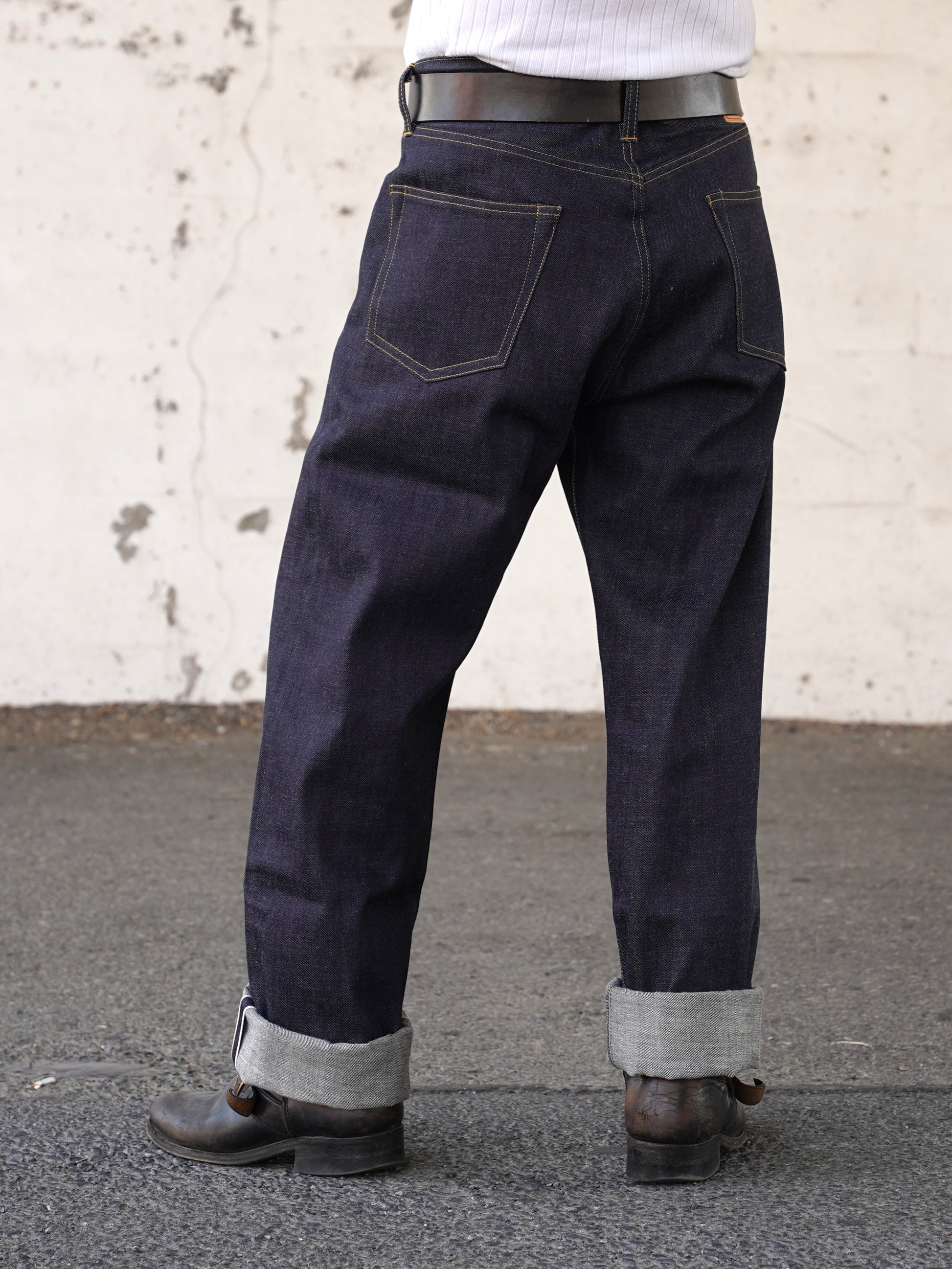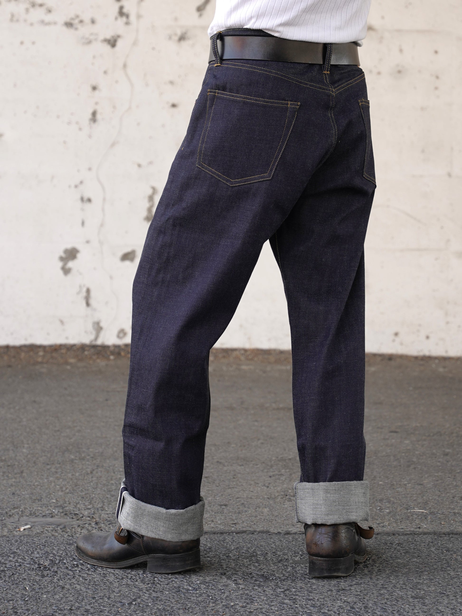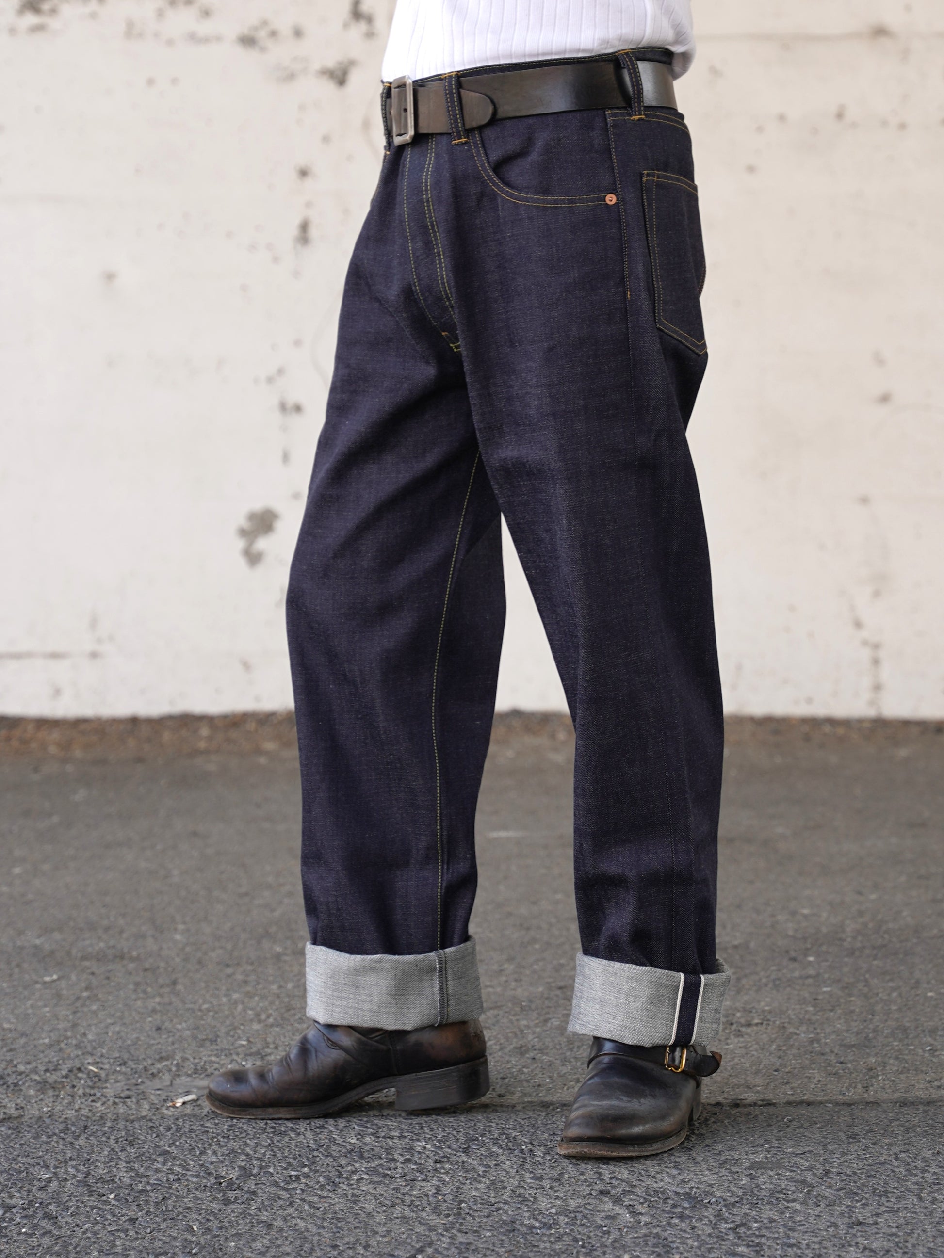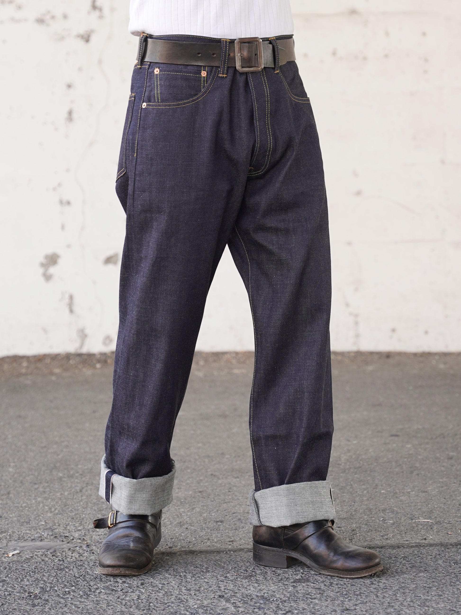 1950年代のXXスタイル、岡山産の12オンスセルビッチデニムを使用。50年代の初期型のストレートシルエット。オーセンティックで程よい太さ、エイジングの雰囲気も抜群な縦落ちで仕上がります。