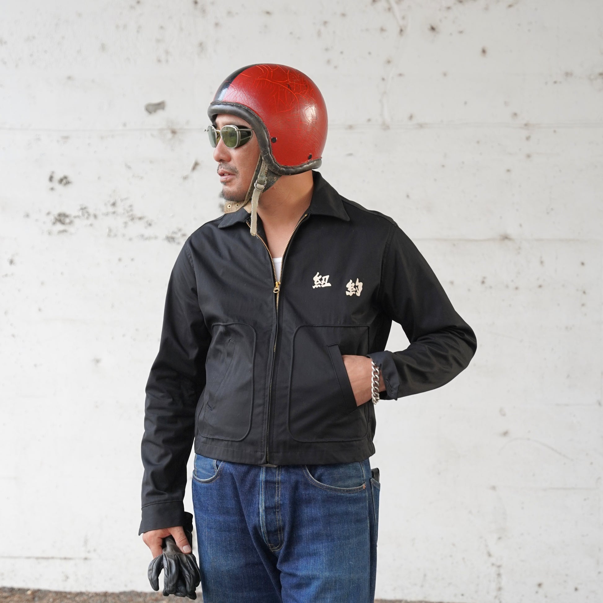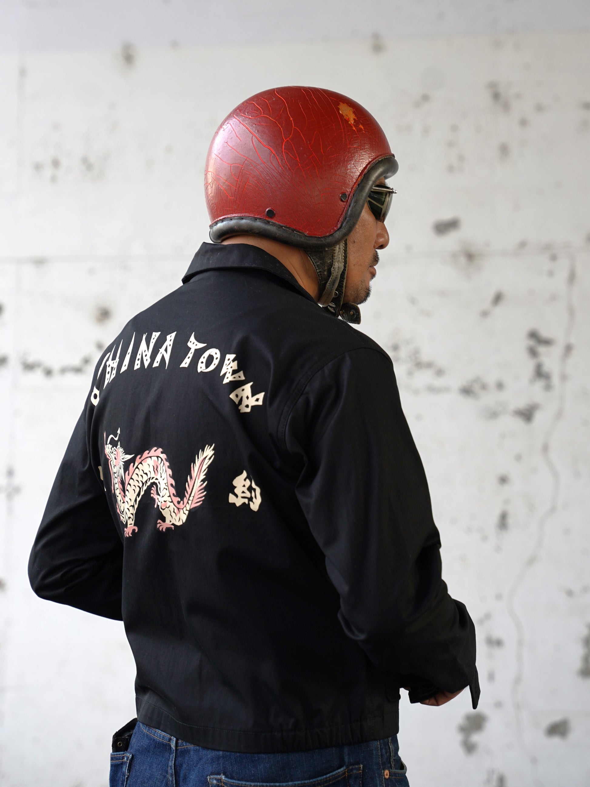 グルービンの定番、1940年代ヘラクレススタイルのコットンジャケット。今年の一重ジャケットはニューヨークドラゴンです。当時チャイナタウンのショップで使用されていたデザインを復元しました。シルエットはタフな男前ショート丈、USA製のタロンジップを使用し、グルービンオリジナルのコットン生地で制作しています。