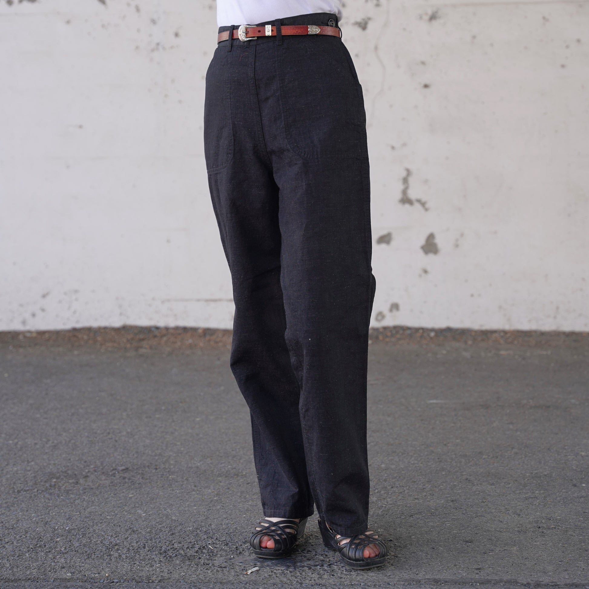 1950年代のストアーブランドの製品を忠実に再現したレディースワークパンツです。岡山産の雰囲気のあるリネンコットンの生地で、エイジングが楽しみな製品です。ジッパーはUSAタロンを使用し、カジュアルなワークスタイルで幅広く活躍するアイテムです。